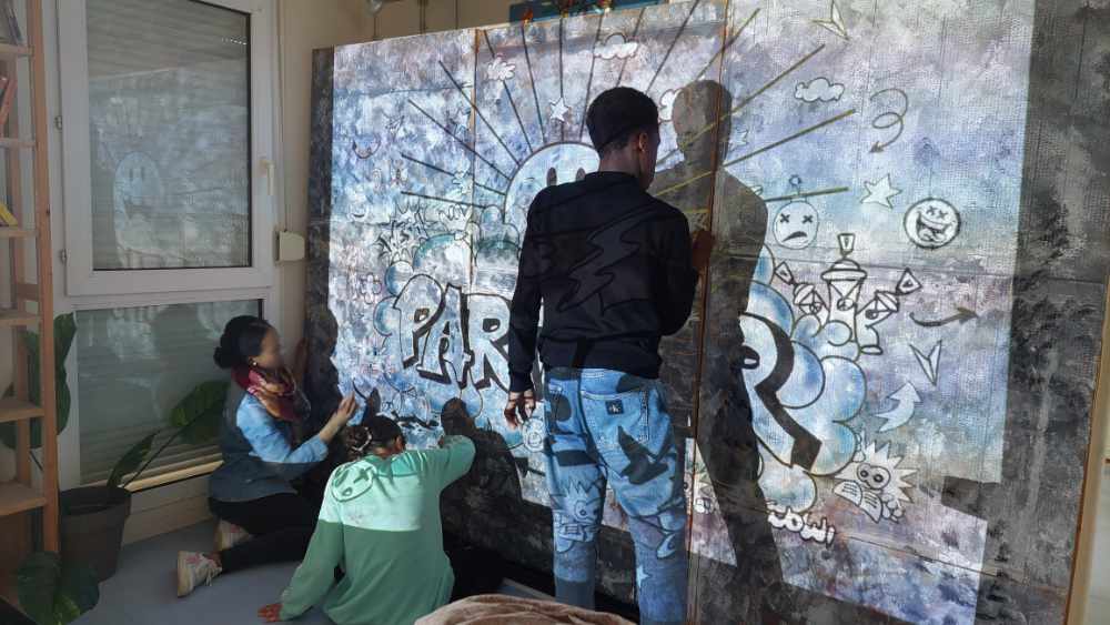 Trois bénévoles, secondés par l’animatrice de l’association, ont assuré le lien entre tous et imaginé l’ossature de la pièce, travaillé avec les jeunes à la réalisation du décor et participé aux répétitions.